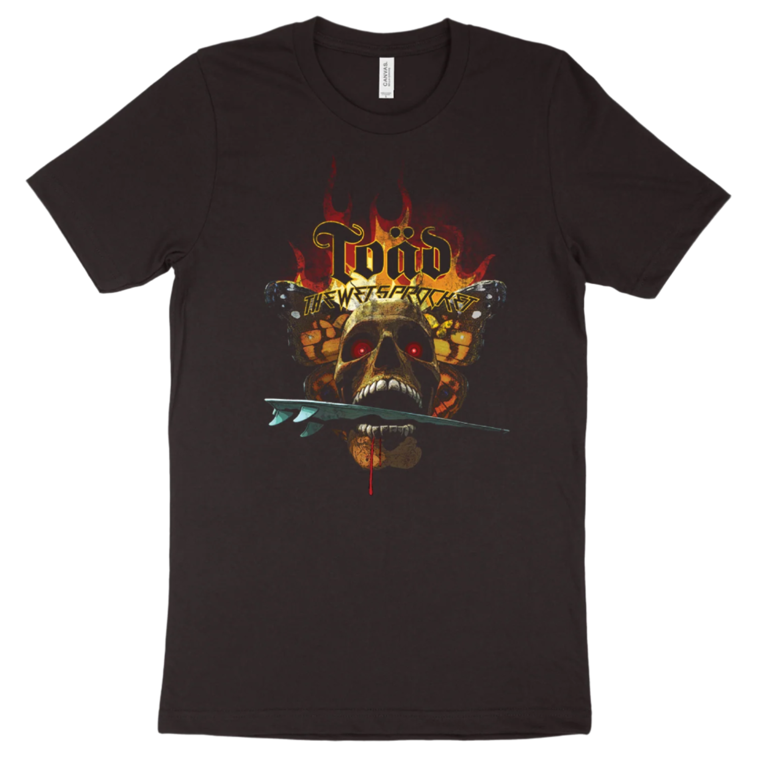 This black t-shirt is made of 100% airlume combed and ring-spun cotton and features a vintage reissue of Toad the Wet Sprocket's Surf Skull full color design across the front of the shirt.
