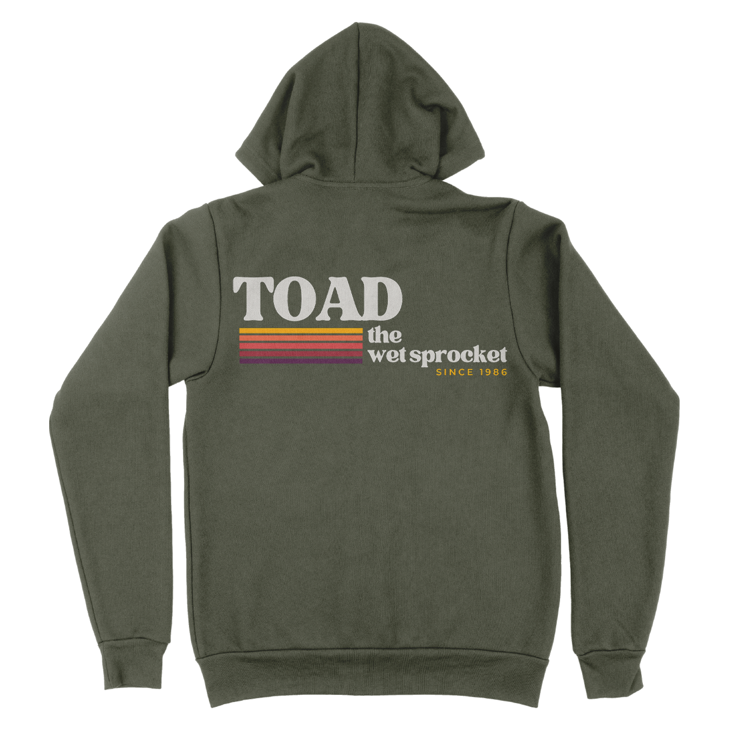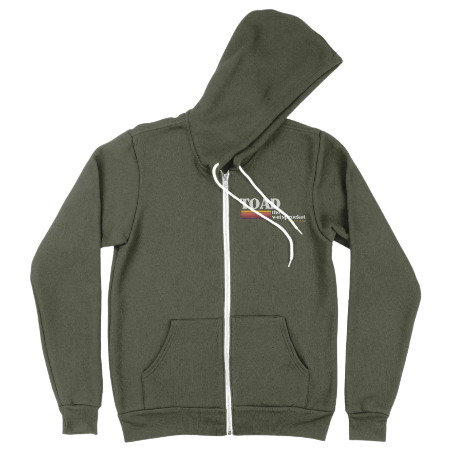 This dark green zip up hoodie is made of a 52/48 airlume combed and ring-spun cotton-poly blend and features the warm vibes "Toad the Wet Sprocket Since 1986" logo.